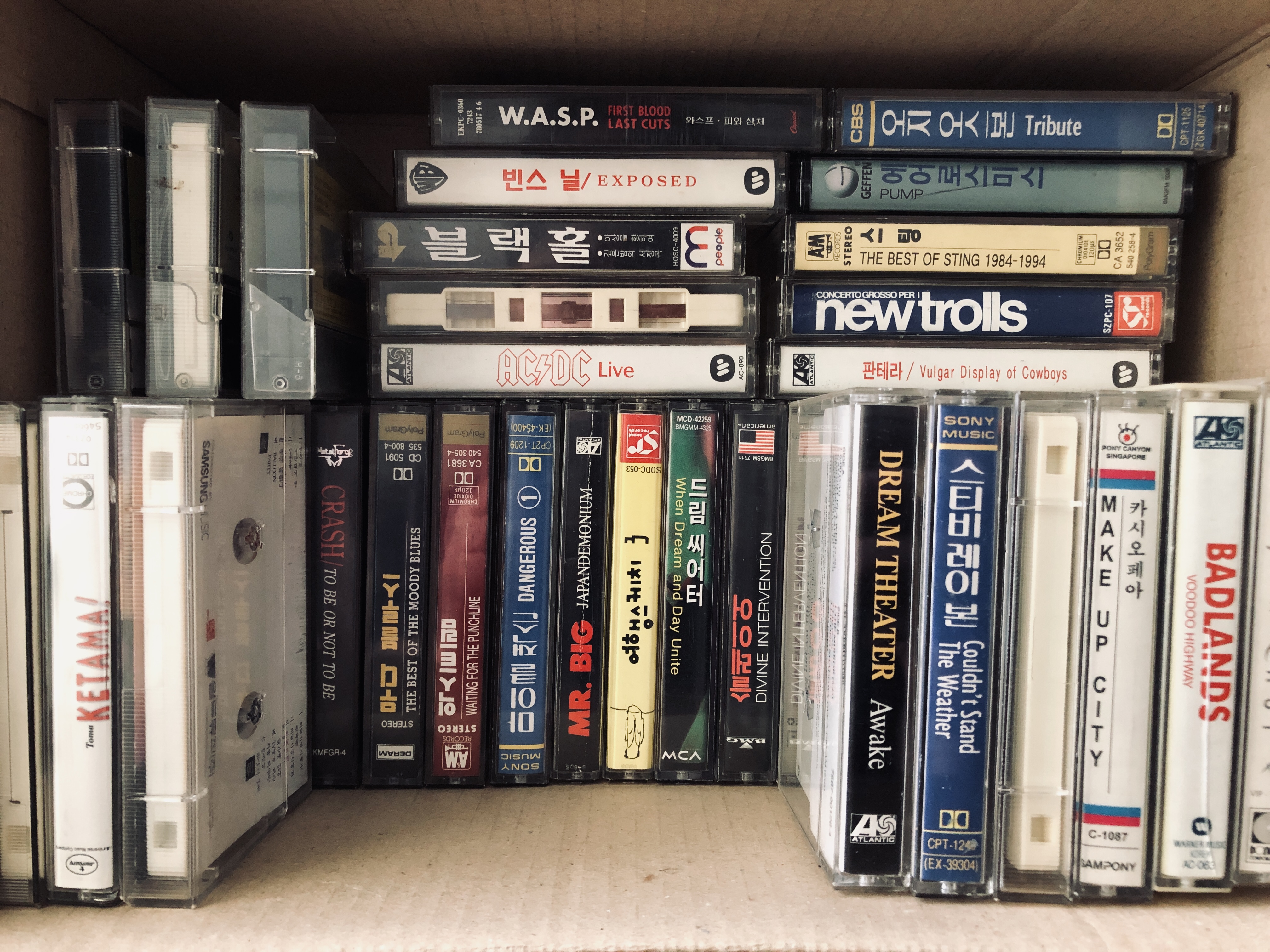 많이 버렸음에도 살아남은 테입들. CD나 LP로도 가지고 있는 것들 말고 없는 것 위주로 들어봐야겠군. 블랙홀이 눈에 띤다. 바벨탑의 전설~~~~~~