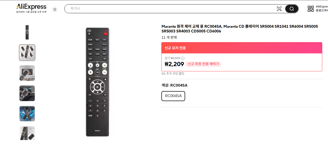 얼마전.... 캠브리지 오디오의 리모콘으로, 볼륨조절이 가능하다는 사실을 확인한 후, 마란츠 SR1041의 리모콘 수신부에 이상없다고 확신. 호환이 된다는 리모콘을 알리에서 주문하고 오늘 받았는데......