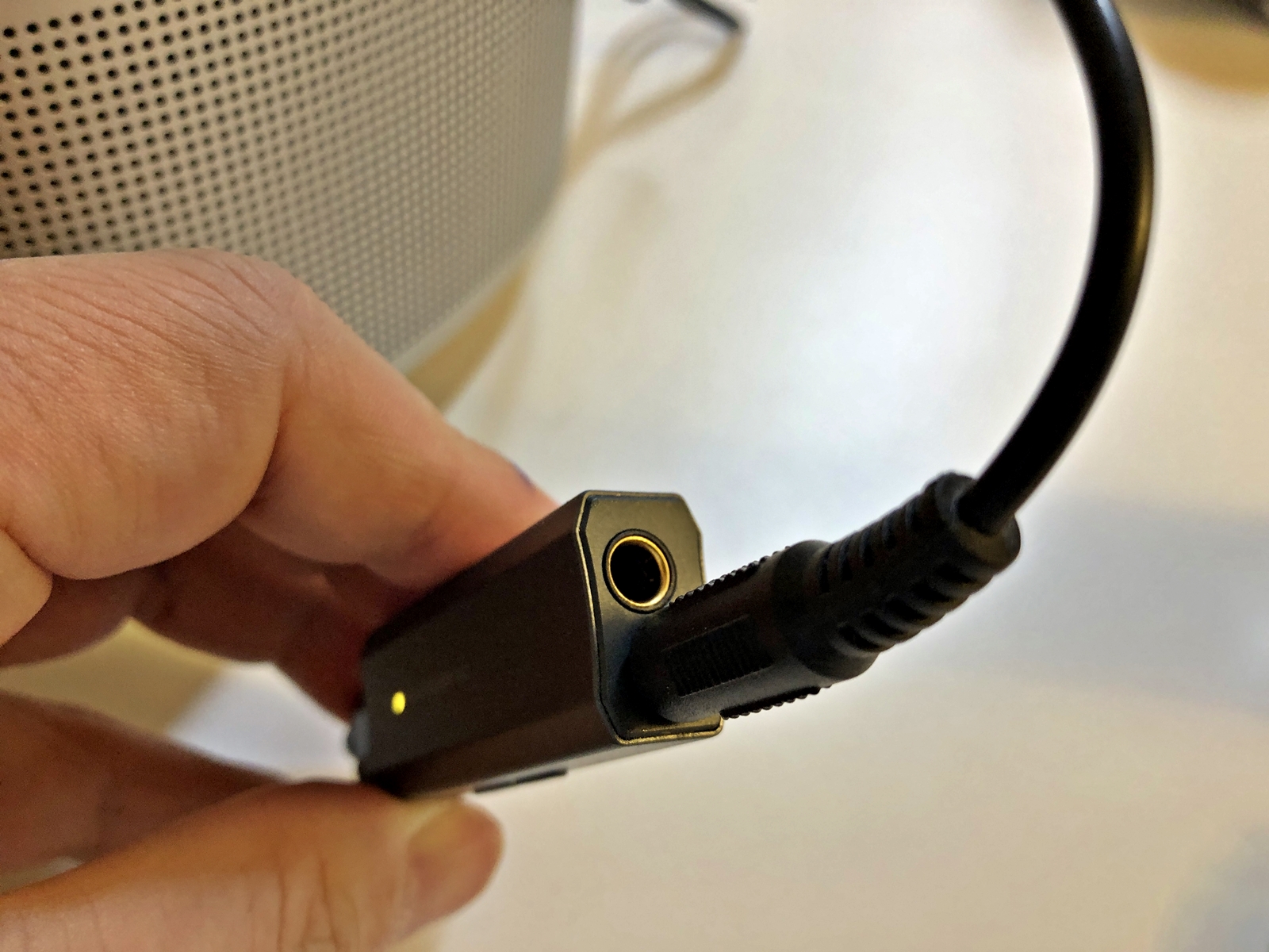 본인의 폰은 아이폰 8+ 이므로 Type-C 를 바로 연결할 순 없고, 아이패드나 갤탭을 구형오디오에 연결하기 위해 구입. 실제 집 주방에 있는 Bose 스마트 스피커500 AUX 단자로 물리니 서늘하리만큼 시원하고 깨끗한 톤이 나온다. ~~~ Good. 녹색불이 들어오면 48kHz - 98kHz.