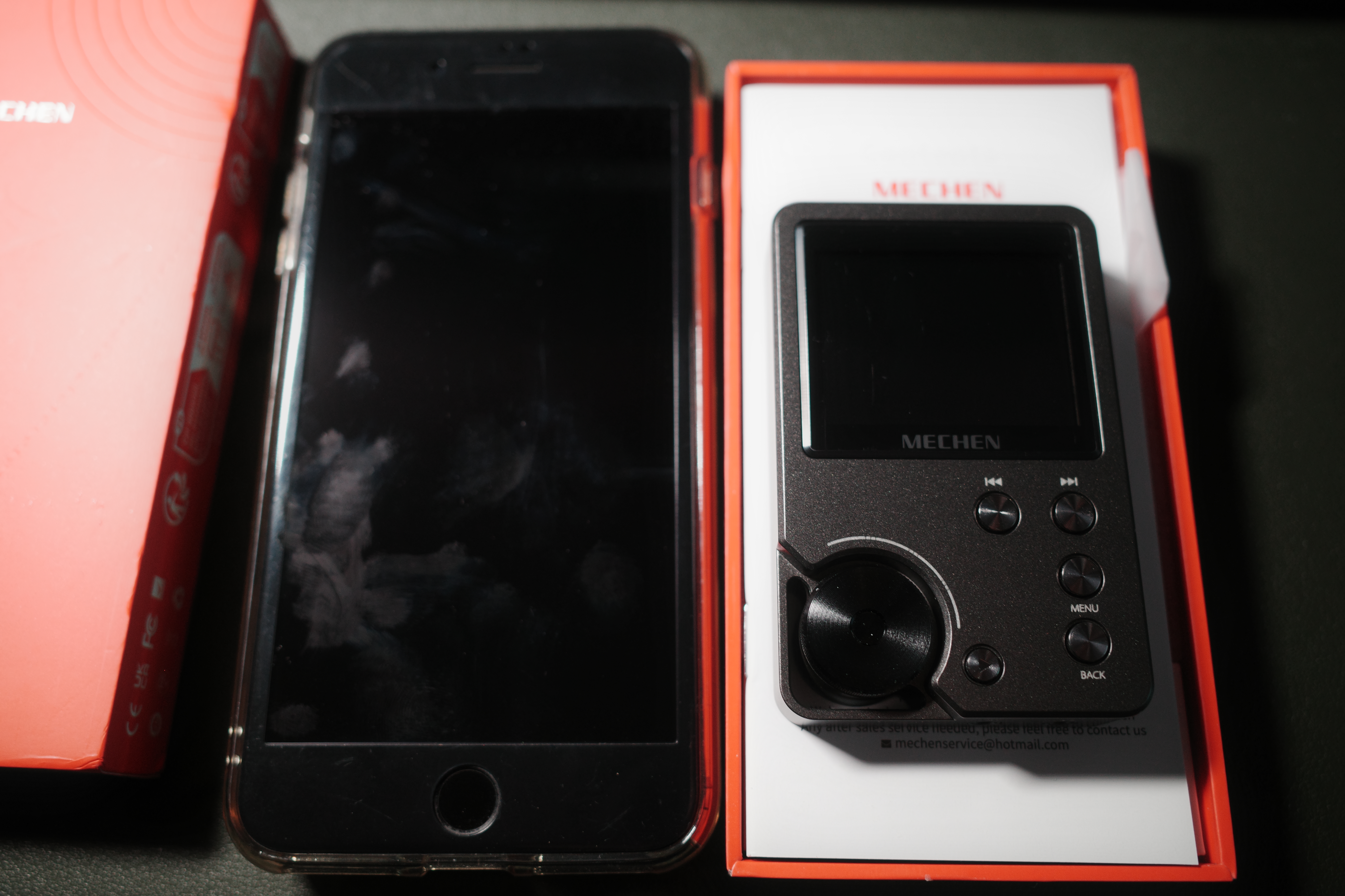 작고 귀여운, 5만원대 고음질 mp3 플레이어인 Mechen M30이 도착. 아래와 같이 아이폰 8+ 와 거의 같은 크기의 케이스안에 작지만, 단단해보이는 본체와 아래쪽에 USB-C 케이블이 들어있다 (광군제때, 이것저것 쿠폰 등을 쓰면 3만원대라는데.... 난 없었음...ㅠㅠ). 보시다시피 본인의 폰은 2018년에 구입한.... 벌써 8년째 사용중인 아이폰이라 용량한계도 있고, 크기도 커서 음악을 듣기엔 좀 부담.... 간편하게 고음질을 좀 즐겨보고자 구입.