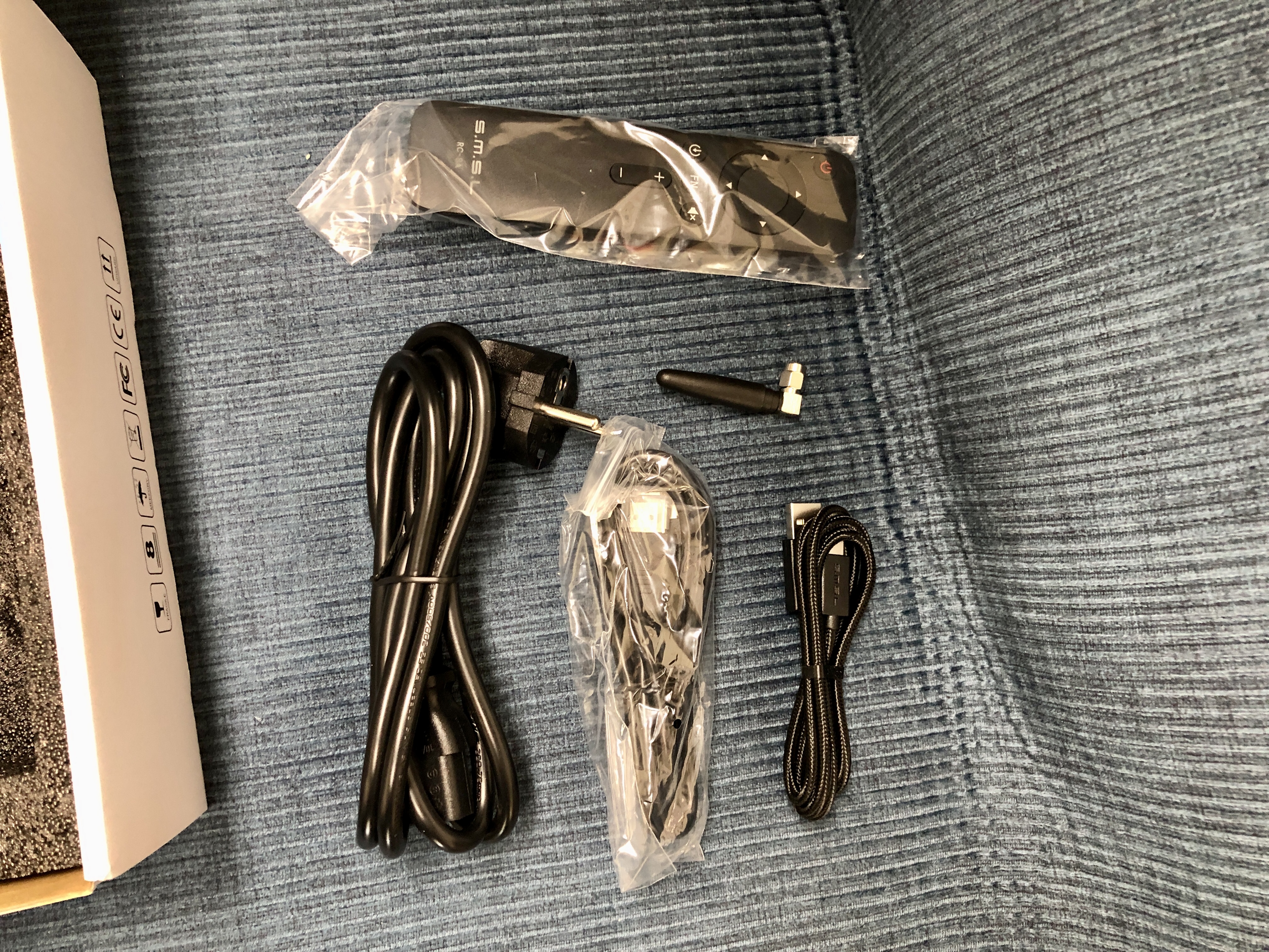 전원연결선, HDMI 케이블, USB-C 케이블, 블루투스 안테나가 동봉.
