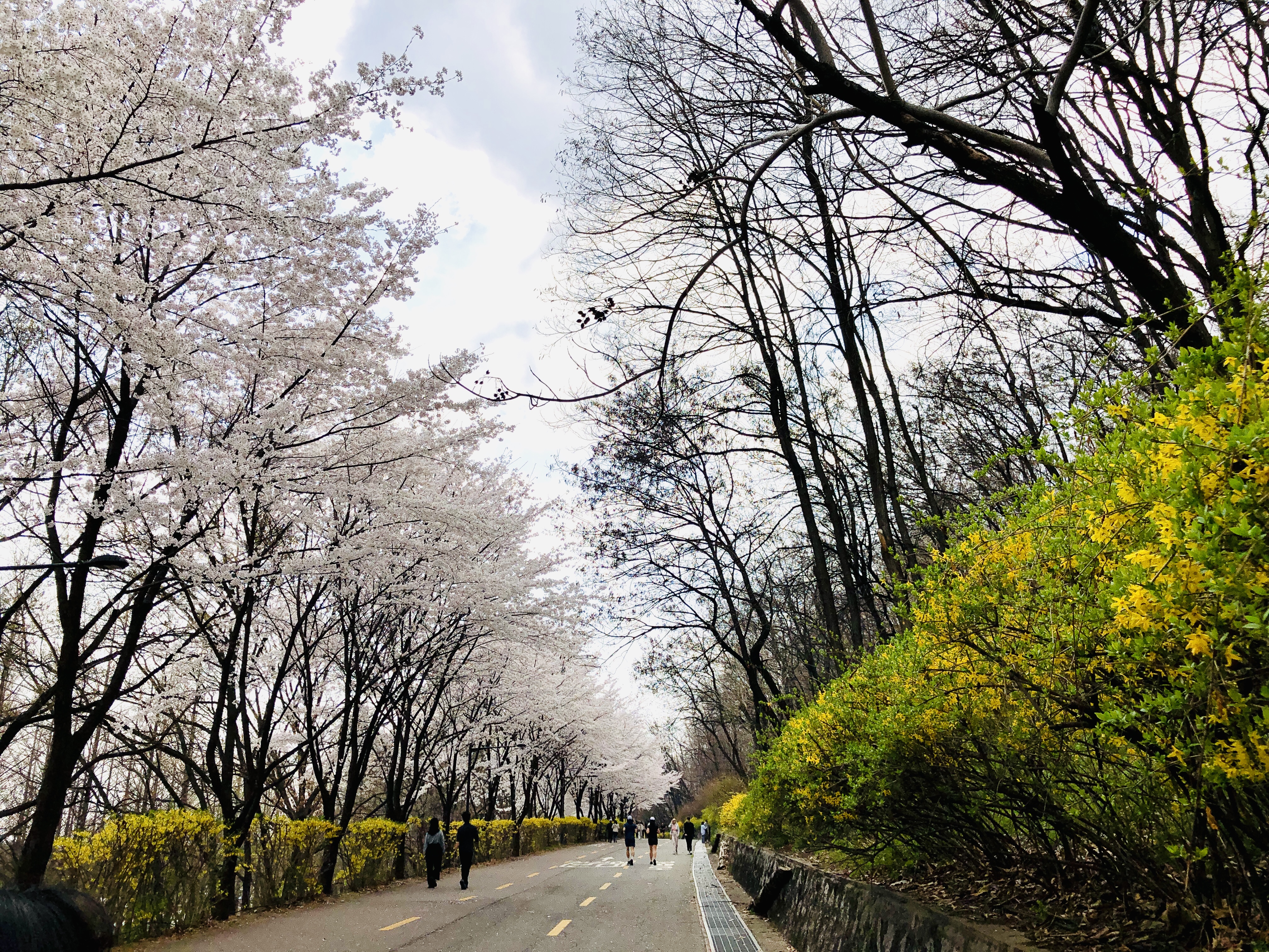 하늘공원에서 내려가는 길에도 벚꽃이 만발~ 여기저기 상춘객들이 북적북적.