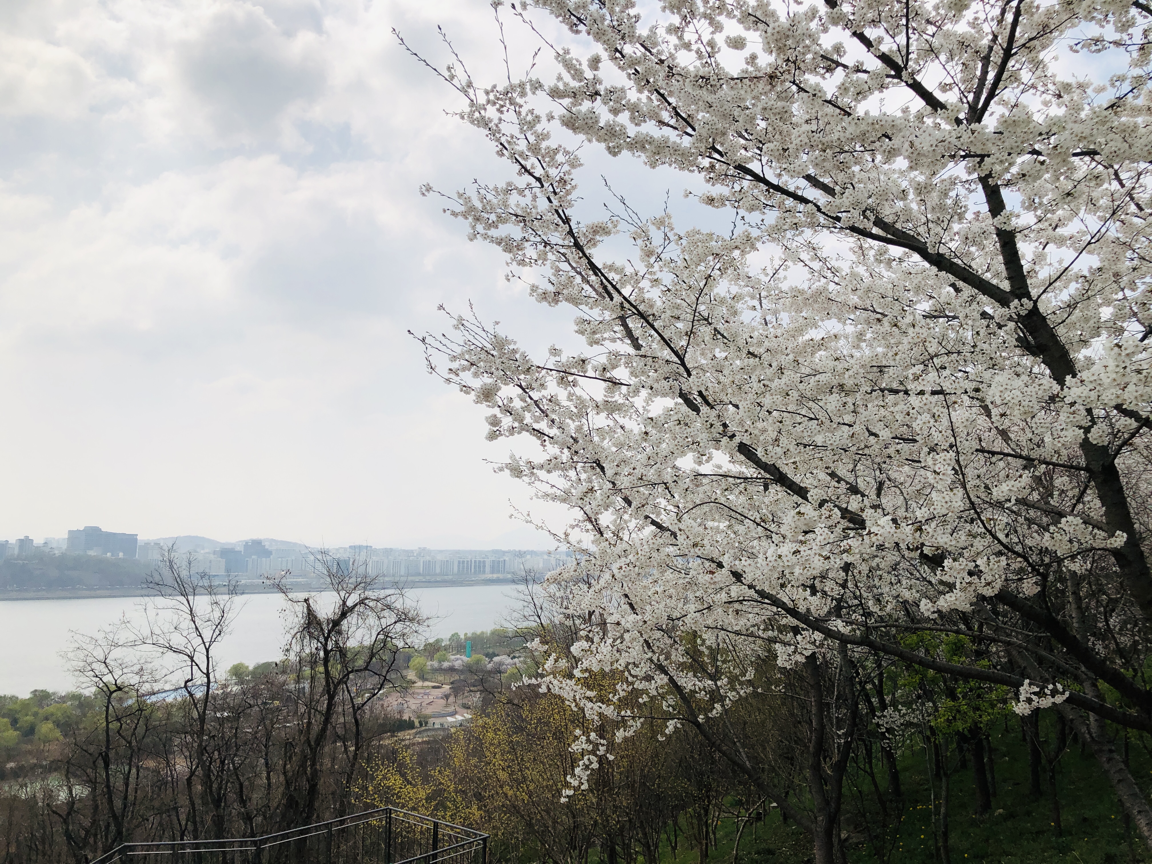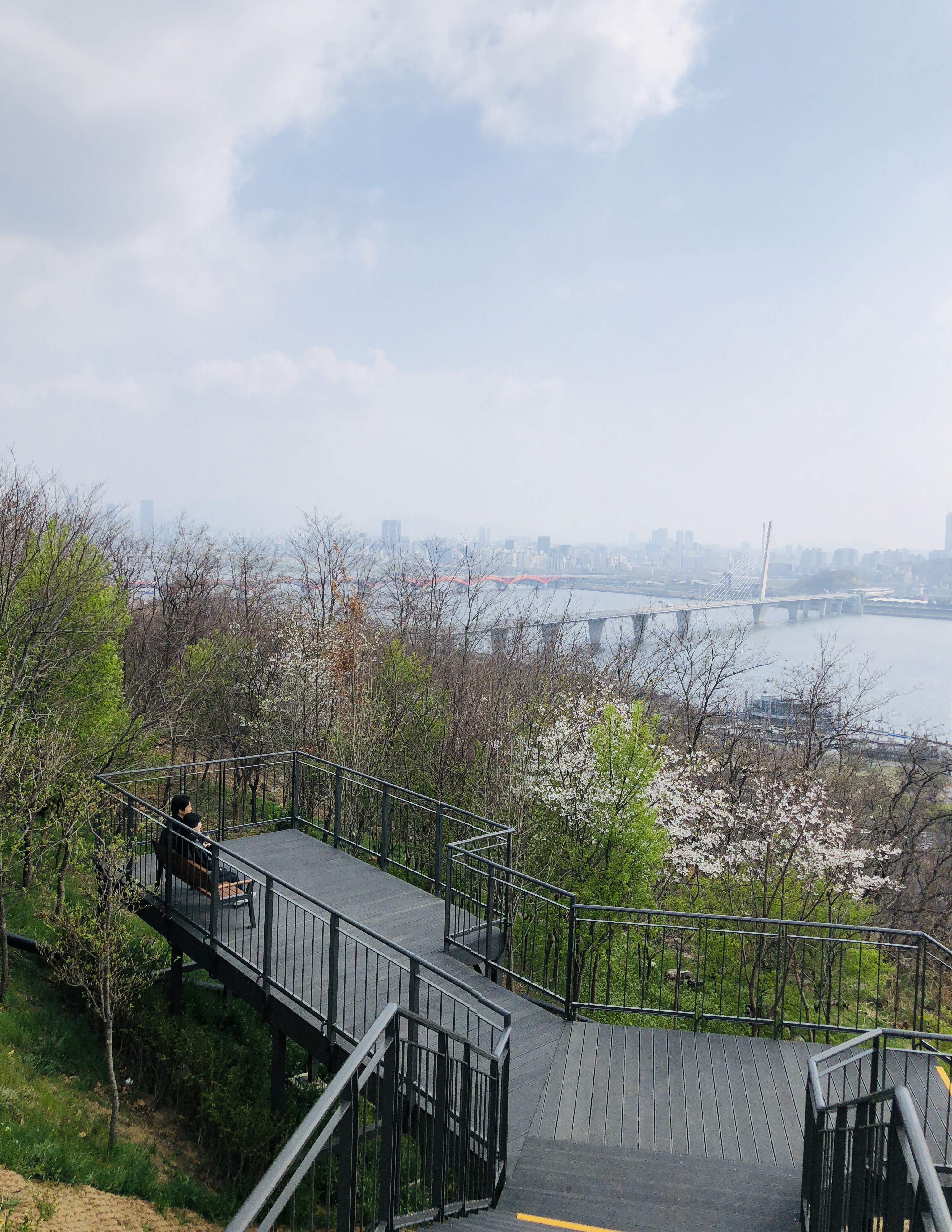 중간쯤 오르다보니 벚꽃도 이쁘고 한강도 시원하고......